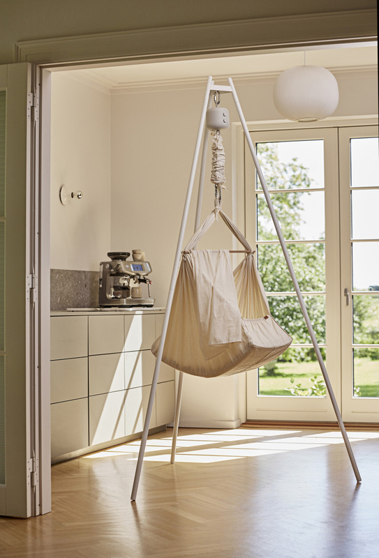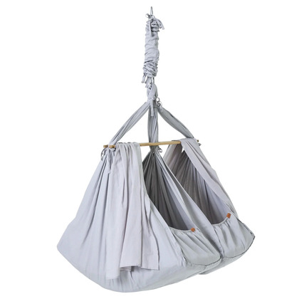 Dvojitý hamak Membantu Premium spája dve samostatné lôžka pomocou robustnej bukovej tyče. Umožňuje tak súčasné hojdanie oboch bábätiek, čo je kľúčové pre zosúladenie ich spánkového biorytmu.