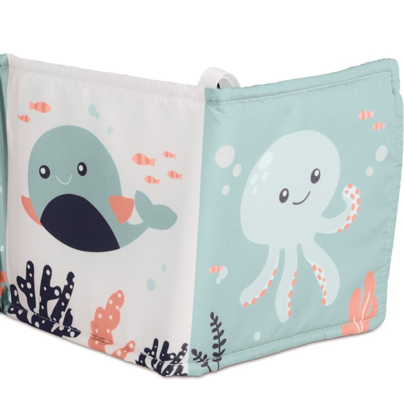 Knižka je vyrobená z polstrovaného materiálu, ktorý je príjemný na dotyk, ľahký a úplne bezpečný aj pre tie najmenšie rúčky.