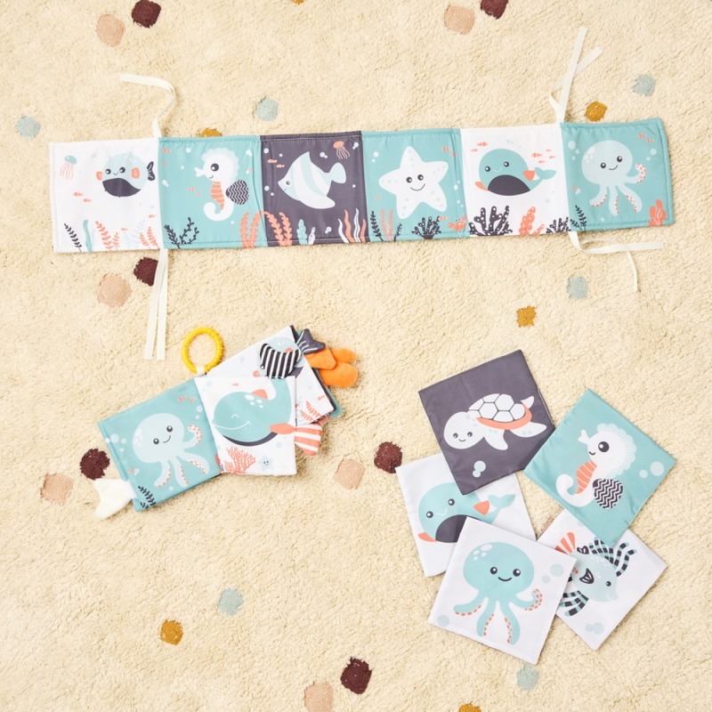 Zrak je prvý zmysel, ktorý bábätko po narodení intenzívne trénuje. Kontrastná knižka Miniland s motívom mora je navrhnutá tak, aby upútala pozornosť novorodenca a pomohla mu s koncentráciou. Jednoduché tvary rýb, korytnačiek a chobotníc v kombinácii s výraznými kontrastmi sú dokonalým štartom do sveta vizuálneho vnímania.