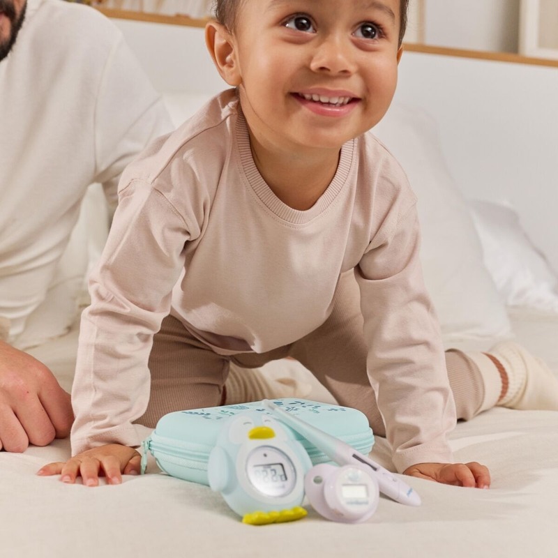 Majte zdravie a pohodlie vášho bábätka pod kontrolou v každej situácii. Sada 3 digitálnych teplomerov Miniland Thermokit Dreamland je kompletné riešenie, ktoré pokrýva všetky potreby modernej rodiny. Obsahuje rýchly telový teplomer s ohybným hrotom, praktický cumlíkový teplomer pre pokojné meranie a multifunkčný teplomer v tvare tučniaka na kontrolu teploty vody a vzduchu.