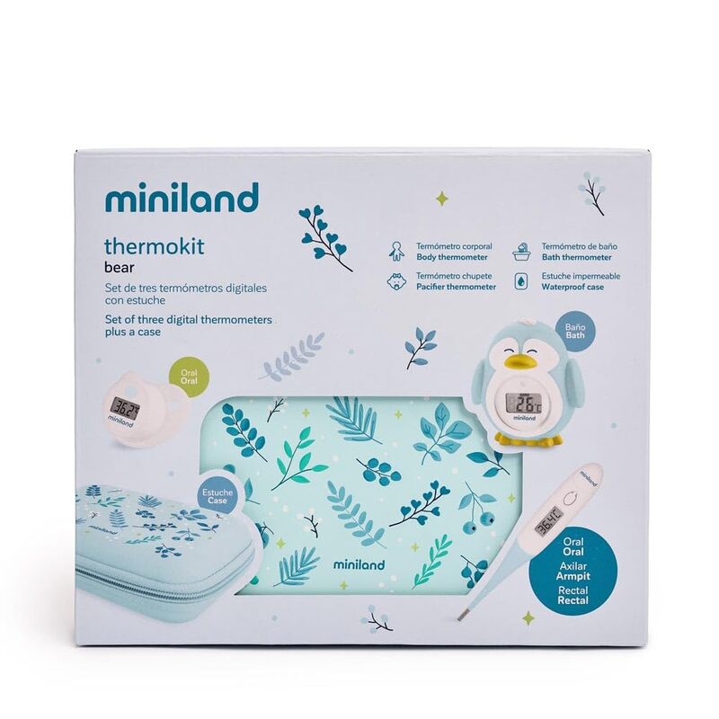 Sada teplomerov Miniland Thermokit Dreamland spája funkčnosť digitálnych technológií s hravým detským dizajnom. Či už ide o každodenný rituál kúpania alebo o náročnejšie chvíle, keď sa bábätko necíti dobre, tieto teplomery vám poskytnú presné informácie v rekordnom čase. Vyberte si kvalitu, ktorá myslí na pohodlie dieťaťa a uľahčuje náročné úlohy moderných rodičov.