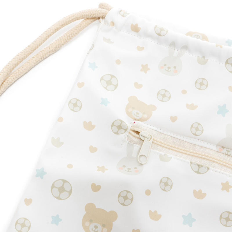 Nastaviteľné šnúrky slúžia zároveň ako popruhy na ramená, vďaka čomu si dieťa vrecúško samo ľahko nasadí aj zloží.